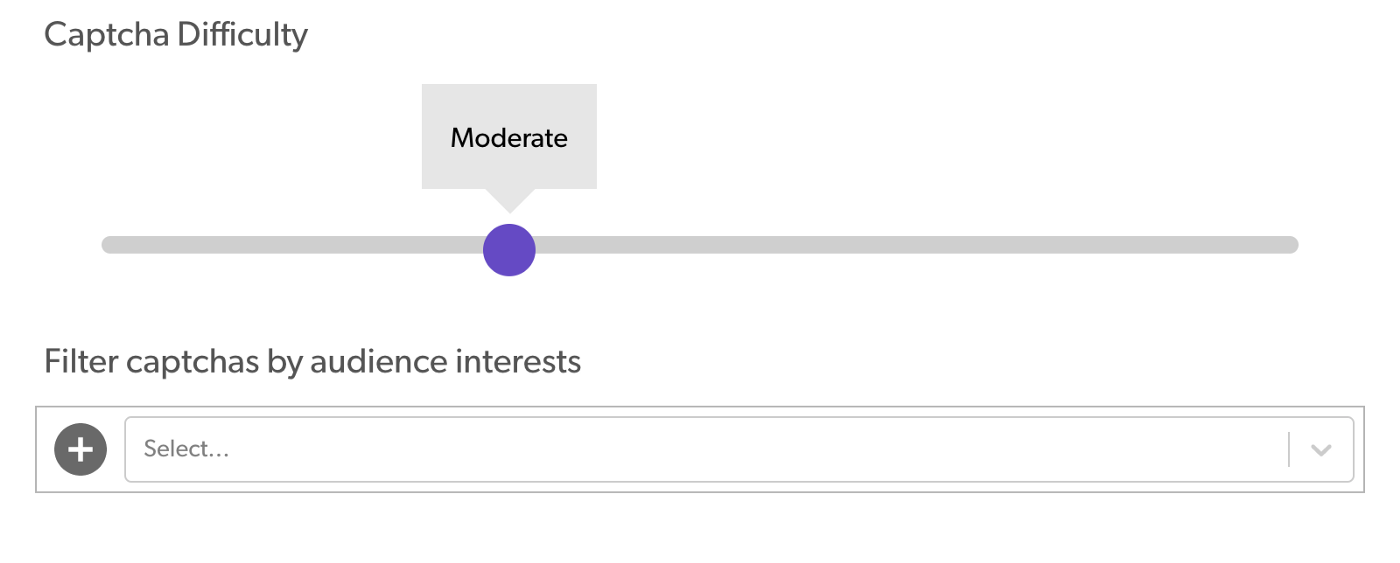 Choosing this option provides a classic CAPTCHA experience, delivering a standard “easy” challenge for most users, most of the time.