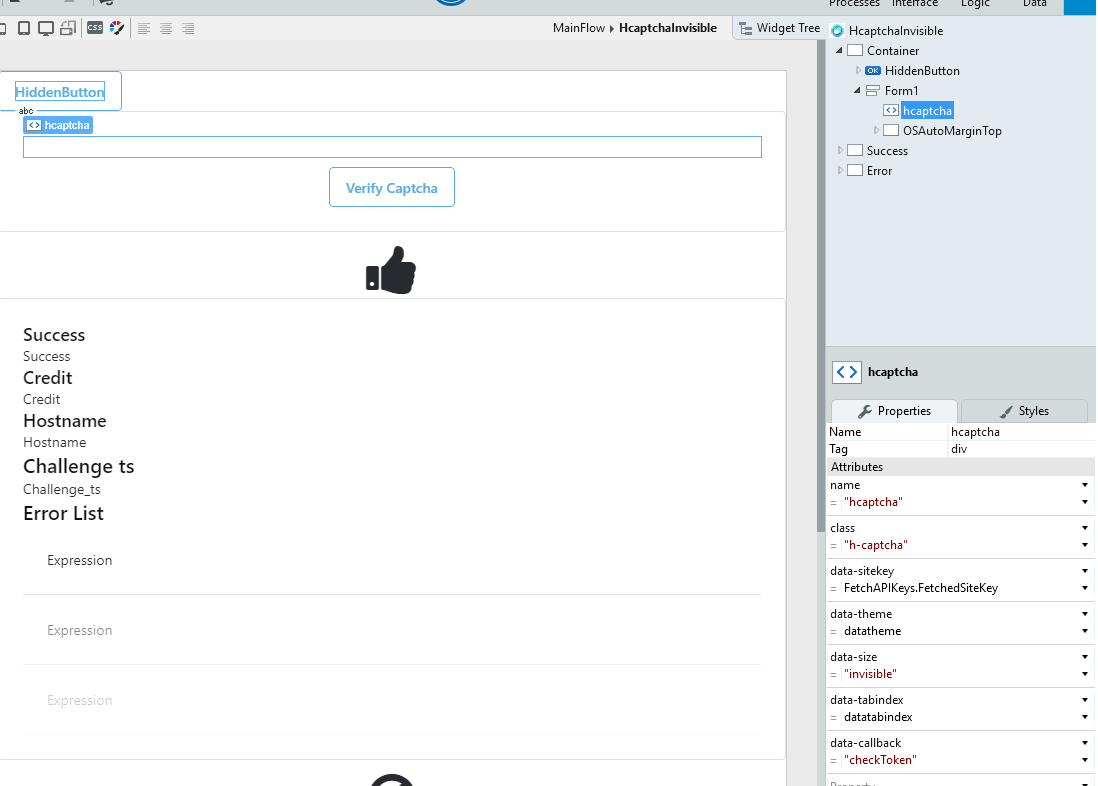 Using hCaptcha with Outsystems 11 Reactive web applications