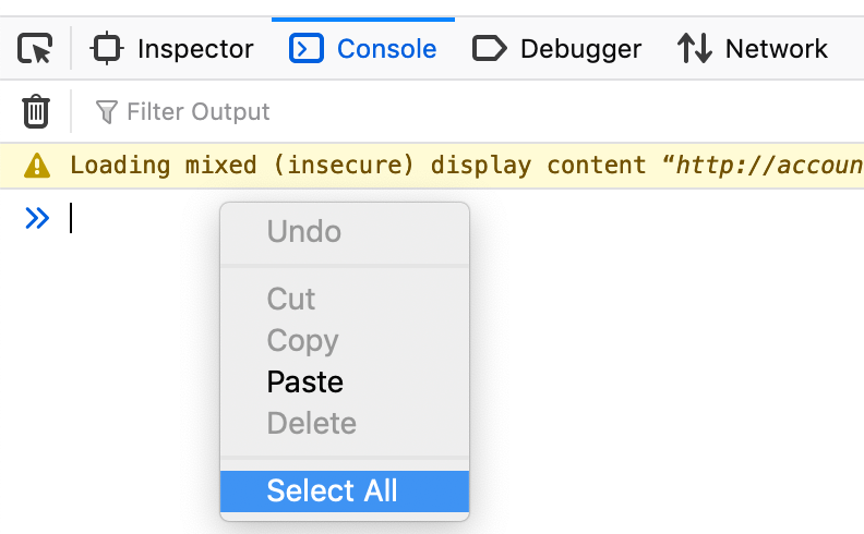 Step 5: Click on the Console tab, and right-click then "Select all" and save that into a text file, in order to save the console log. Send us that as well.
